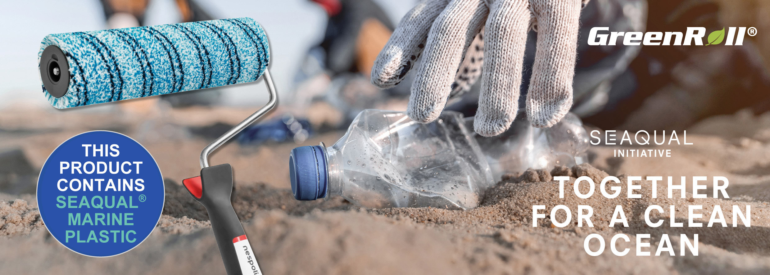 Los rodillos para pintar GreenRolll® contienen SEAQUAL® YARN, que es un poliéster de máxima calidad, reciclado procedente de la recuperación de los residuos de plástico marino. Ayúdanos a limpiar nuestras playas, ríos y océanos.
