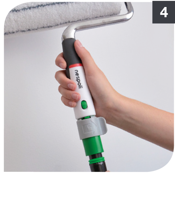 - El mecanismo RollMatic permite desenganchar el mango del rodillo mediante un sencillo sistema mecánico de presión que evita ensuciarse las manos