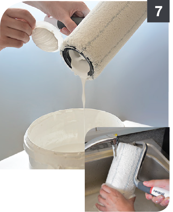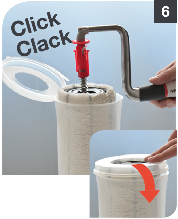 El contenedor RollMatic® FreshBox® mantiene el rodillo húmedo y listo hasta 3 semanas sin lavarlo.