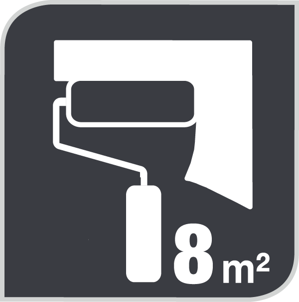 - El depósito contiene 0,6 litros de pintura, suficiente para cubrir una superficie de 7-8 m2
