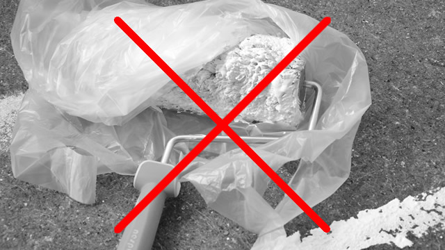 ¿Qué pasa con el rodillo durante un descanso? Tradicionalmente, el pintor envuelve el rodillo en una bolsa de plástico o lo deja sumergido en la pintura.