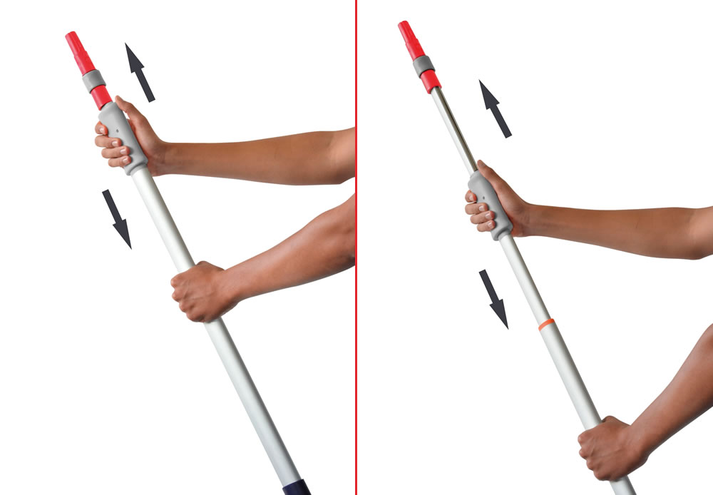 Alargo ligero de aluminio con forma ergonómica, extensible con un solo movimiento suave de 106 a 219 cm.